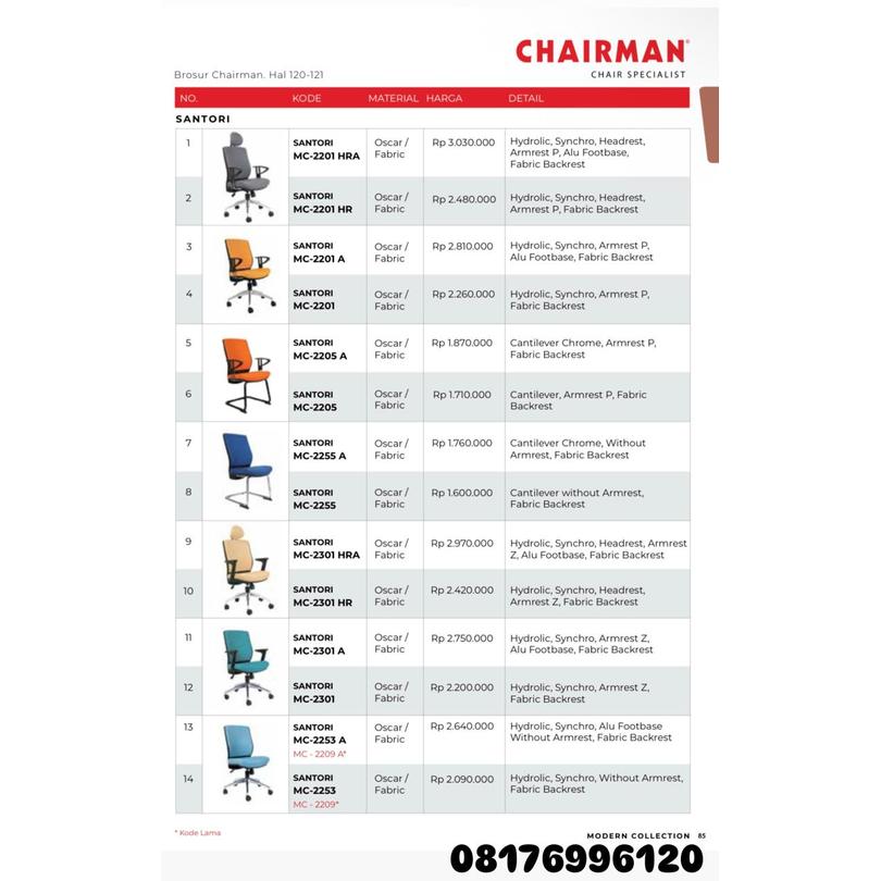 Kursi Kantor Chairman SANTORI MC 2201 HRA 2201 HR 2201 A 2201 2205 A 2205 2255 A 2255 2301 HRA 2301 HR 2301 A 2301 2253 A 2253