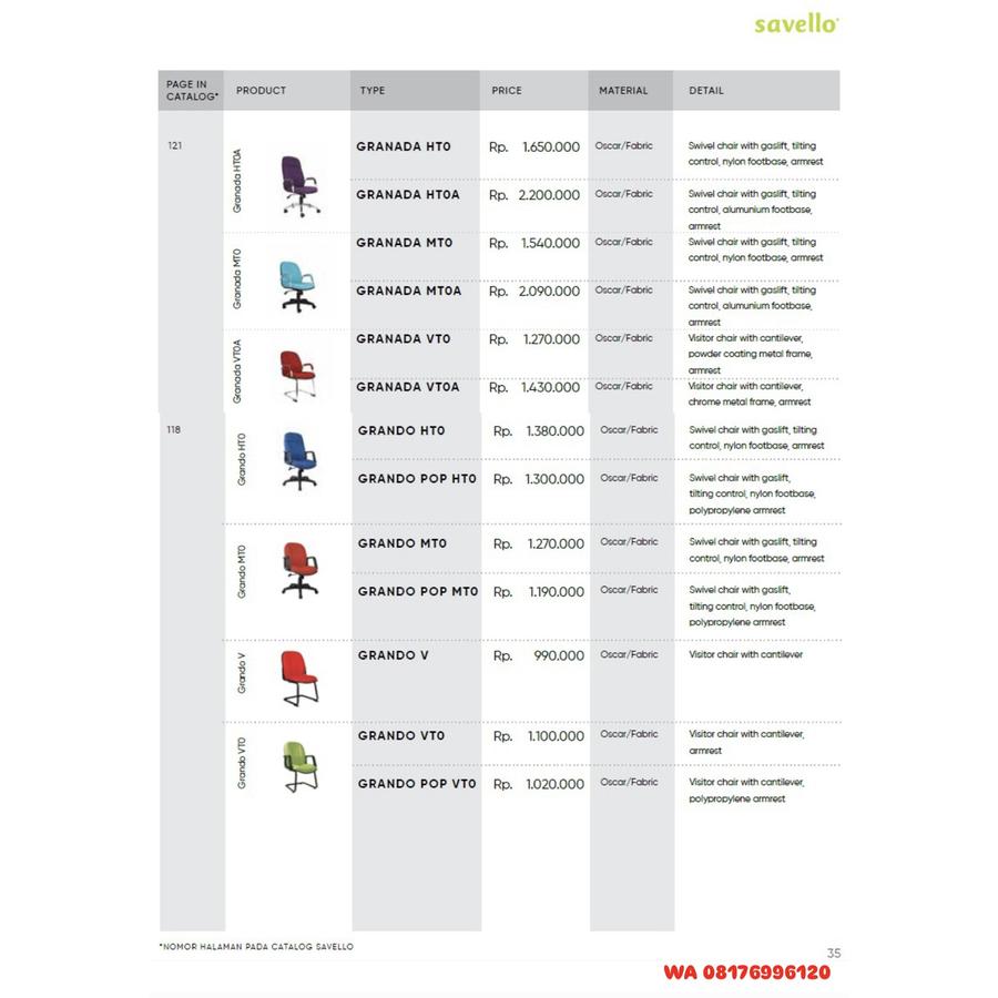 Kursi Kantor Savello GRANADA HTO HTOA MTO MTOA VTO VTOA & GRANDO HTO POP HTO MTO POP MTO V VTO POP VTO