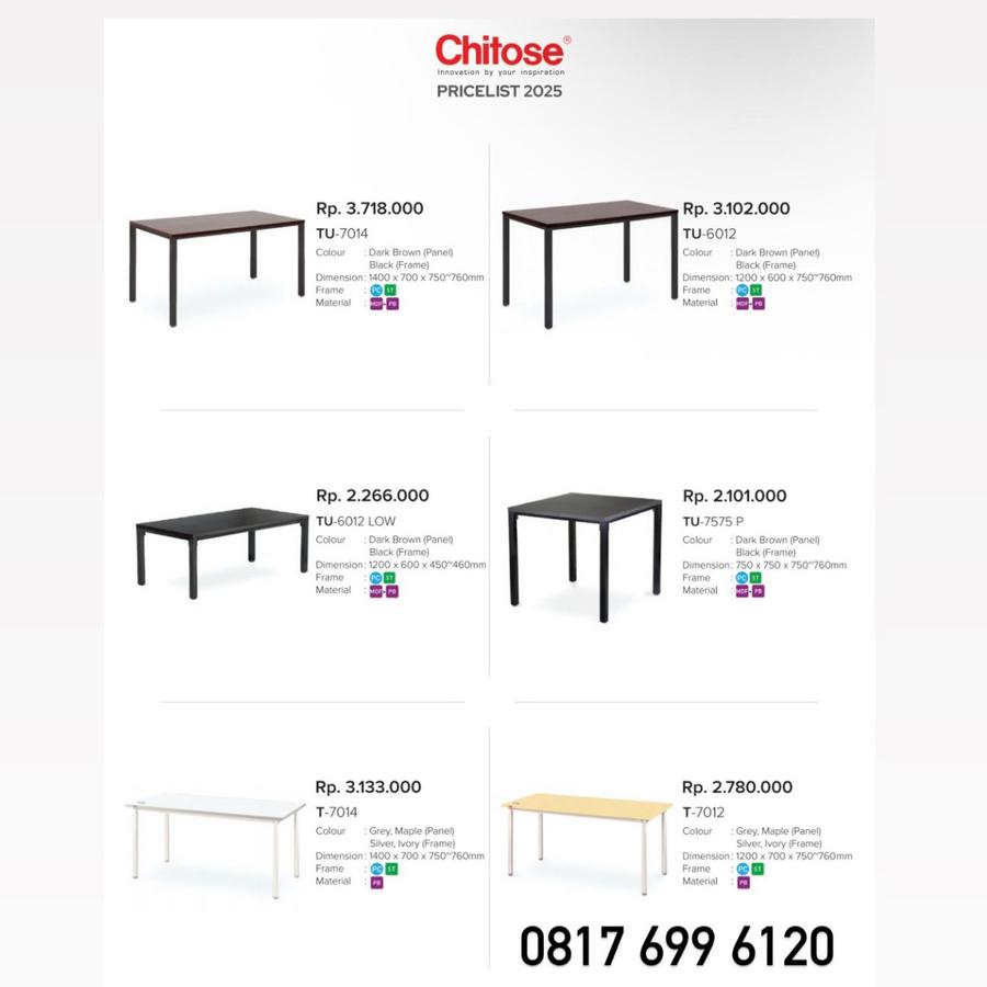 Meja Kantor Chitose TU-7014 TU-6012 TU-6012 LOW TU-7575 P T-7014 T-7012